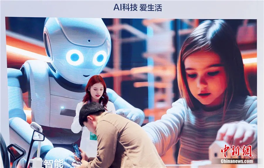2024年3月14日,在上海舉(ju) 辦的中國家電及消費電子博覽會(hui) 上,多款AI高科技人形家庭機器人亮相。陳玉宇 攝