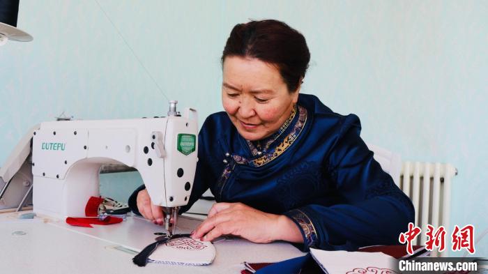 圖為(wei) 斯琴正在製作服飾。茫崖市委宣傳(chuan) 部 供圖