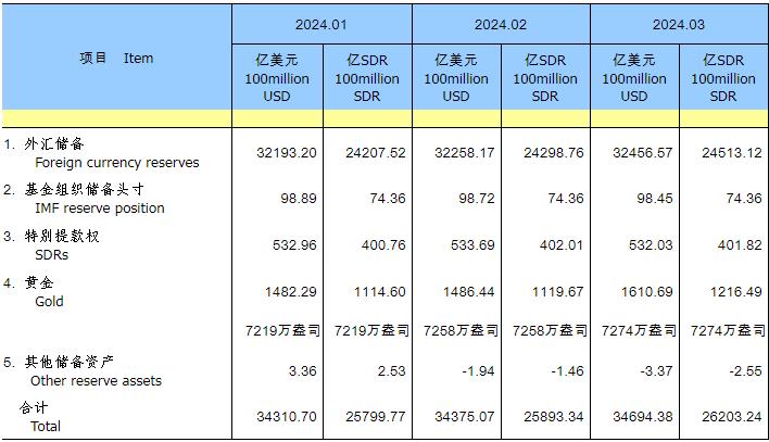 中新網4月7日電 據央行網站消息,4月7日,央行公布數據顯示,中國3月末黃金儲(chu) 備7274萬(wan) 盎司,2月末為(wei) 7258萬(wan) 盎司。
