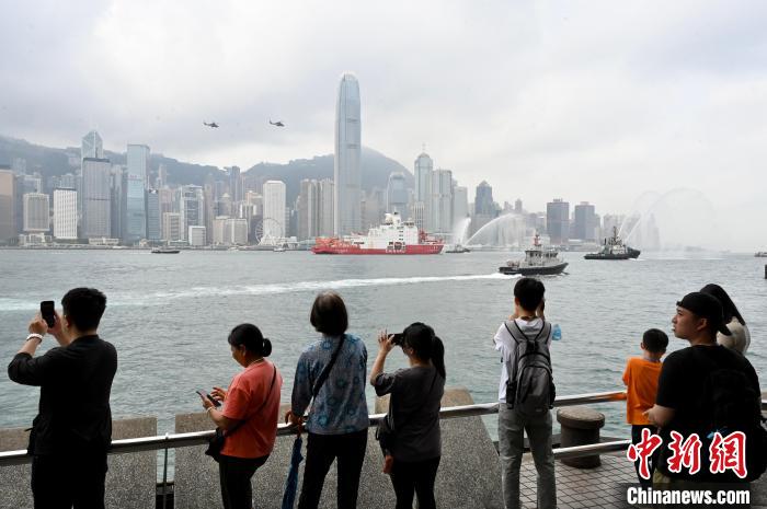 當天上午“雪龍2”號抵達前,維港兩(liang) 岸已聚集了大批前來圍觀的香港市民和遊客,爭(zheng) 睹“雪龍2”號的風采。上午9時許,“雪龍2”號自東(dong) 向西駛入維多利亞(ya) 港,兩(liang) 岸民眾(zhong) 紛紛向“雪龍2”號揮手致意,歡迎其來港訪問。