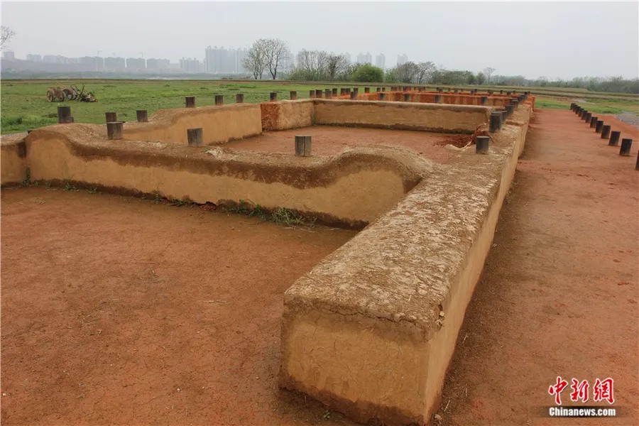 盤龍城遺址宮殿基址複原展示。張芹 攝