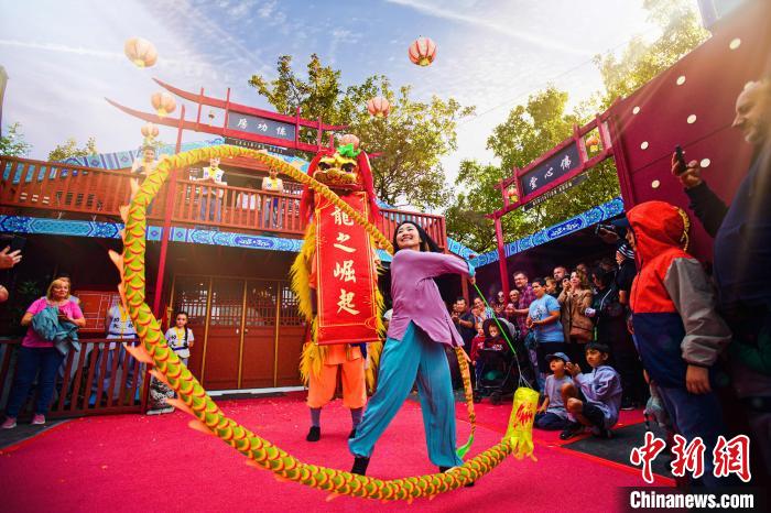 2023年7月22日,在武館舉(ju) 辦的社區開放日活動上,白龍和常春向學生展示武術。 鍾欣 攝