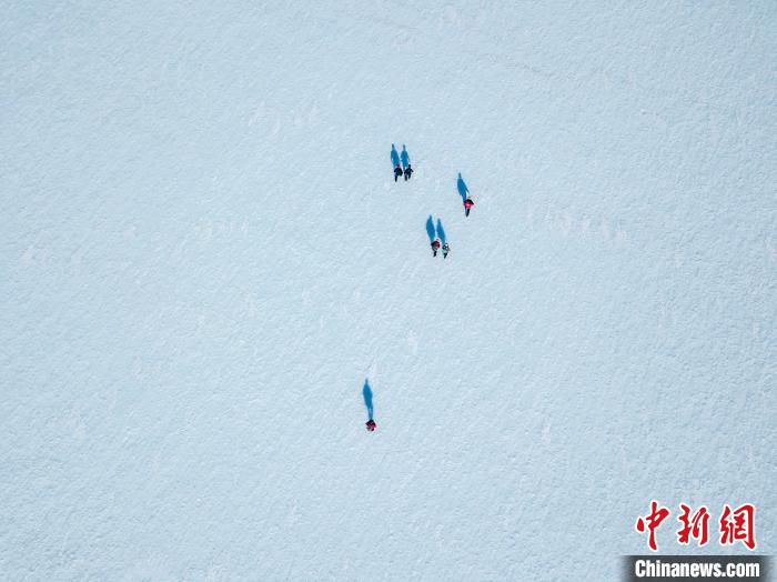 藍冰上的科學家、野外向導和記者。照片攝於(yu) 智利南極研究所(INACH)2022年對南極洲埃爾斯沃斯山脈聯合冰川的實地考察(圖片來自智利聖地亞(ya) 哥大學Jose Jorquera)。施普林格·自然/供圖