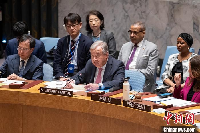 當地時間4月14日,聯合國安理會(hui) 就伊朗襲擊以色列在紐約聯合國總部召開緊急會(hui) 議。圖為(wei) 聯合國秘書(shu) 長古特雷斯發言。 中新社記者 廖攀 攝