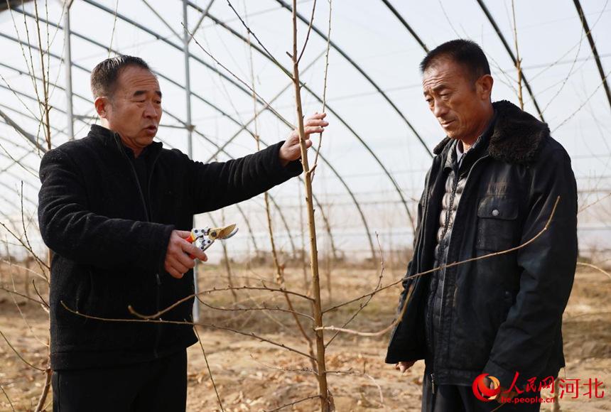 人民網石家莊12月26日電 近日,走進河北省邢台市廣宗縣,“黨(dang) 員種植能手”正在為(wei) 北塘疃鎮南寺郭村村民培訓修剪和種植技術。