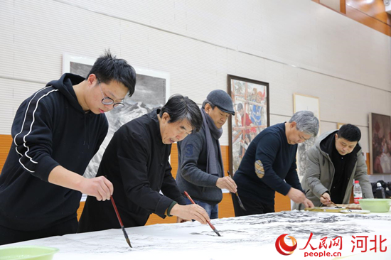 人民網石家莊1月6日電 由“為(wei) 奧運喝彩”組委會(hui) 主辦的“百名畫家繪冬奧”活動5日走進河北。河北省20餘(yu) 名當地藝術家現場揮毫潑墨,合作創作了三幅奧林匹克題材的中國畫作,喜迎即將到來的冰雪盛會(hui) 。