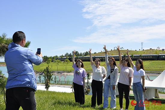 遊客在遷安市金嶺礦山生態修複旅遊觀光景區打卡留念(資料圖片)。 商立超攝