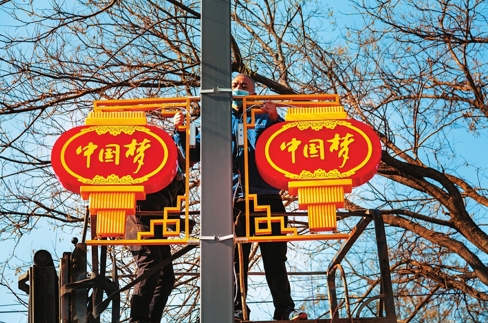 1月11日,工作人員在運城市鹽湖區紅旗街上安裝花燈。臨(lin) 近春節,運城市城市管理局組織人力在市區主要街道裝置迎新花燈,花燈有燈籠、中國結、鞭炮等多種造型,扮靚了城市,也營造出歡樂(le) 、祥和、喜慶的節日氛圍。(茹雅攝)