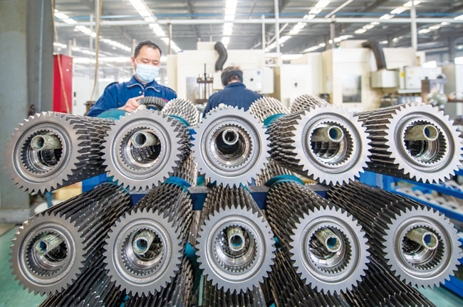 新年伊始,金華市金義(yi) 新區企業(ye) 做好疫情防控同時,開足馬力趕製新年訂單,力爭(zheng) “開門紅”。1月12日,一家齒輪有限公司生產(chan) 車間裏,工人正在加工汽車變速箱齒輪,趕製訂單抓生產(chan) 。(胡肖飛)