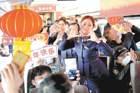 1月16日,合肥客運段工作人員在G7162次列車上為(wei) 旅客表演節目,讓旅途充滿溫情。2022年春運從(cong) 1月17日開始,2月25日結束,共計40天。 新華社記者 黃博涵攝