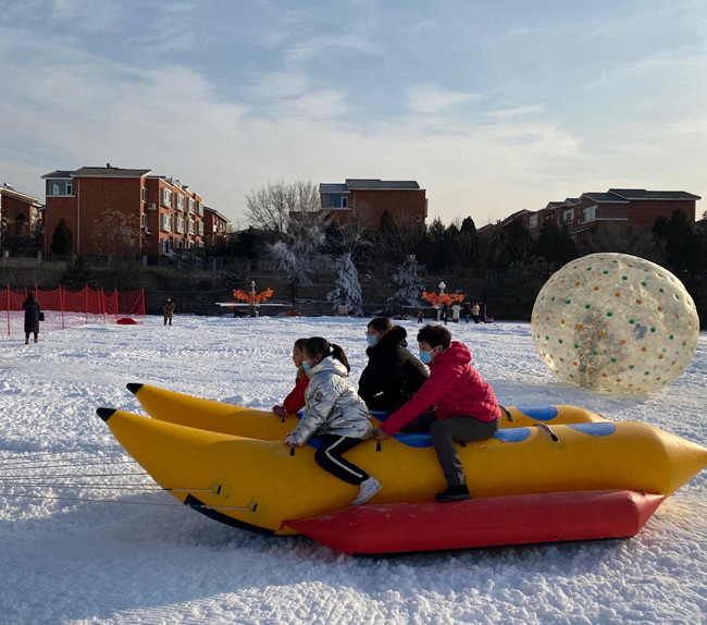 據了解,嘉年華位於(yu) 懷柔區雁棲鎮範各莊郵局路口向西100米處(鴻翔花園西南門西側(ce) ),活動將持續至2月底,營業(ye) 時間為(wei) 周一至周日9:00至17:00,市民遊客可免門票入內(nei) ,冰雪項目單獨收費。(範曉琦 懷柔區供圖)