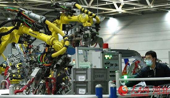 滄州搶抓京津冀協同發展機遇,積極承接京津疏解企業(ye) 項目。(圖為(wei) ,近日,工人在北京現代滄州工廠車身車間生產(chan) 線上工作)。 苑立偉(wei) 攝