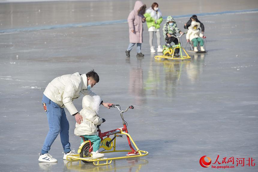 遊客在遵化市山裏各莊村滑冰場遊玩。 張旭攝