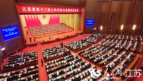 江蘇省十三屆人民代表大會(hui) 第五次會(hui) 議現場。人民網 耿誌超攝