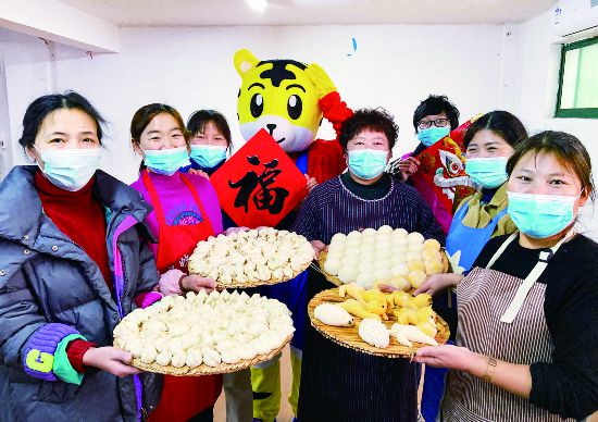 1月19日,在金華婺城區城西街道河盤橋社區活動室,部分留金過春節的外來務工人員一起做花饃、蒸饅頭、包餃子,提前感受家鄉(xiang) 過年的喜慶氣氛。河南開封籍的於(yu) 紅霞說,今年她響應政府號召留金過春節,丈夫平時開大貨車,常年奔波在外,非常辛苦,趁著春節可以在家裏好好休息,她準備了一些家鄉(xiang) 特色的菜肴和麵食。(時寬兵)