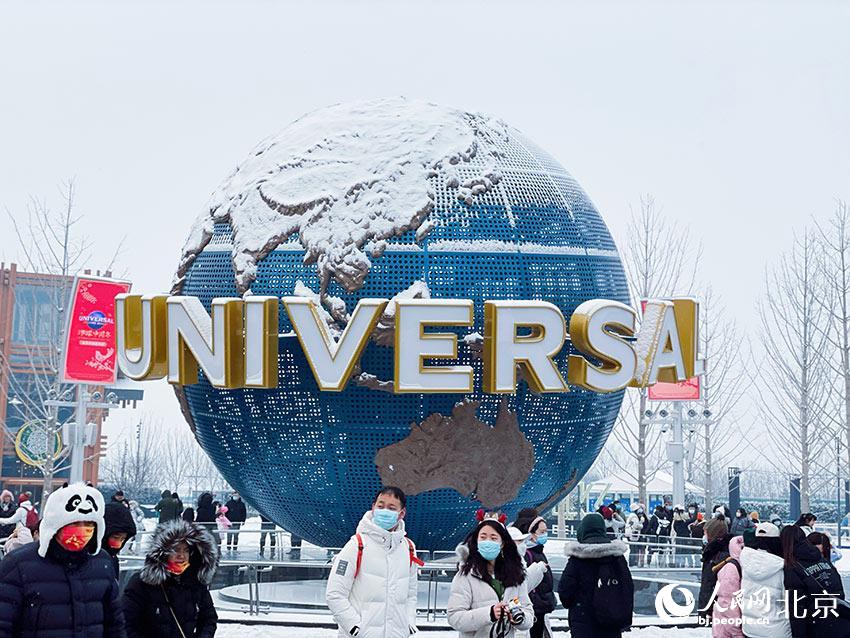 在紛紛揚揚的雪花中,北京環球度假區開啟了首個(ge) “環球中國年”季節性主題活動。人民網 董兆瑞攝