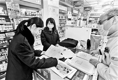 昨日下午,北青報記者跟隨東(dong) 城區市場監管局執法人員走進轄區藥店,開展藥店疫情防控檢查。在磁器口附近的一家國大藥房連鎖藥店,這家藥店一進門處就是收銀台,購買(mai) “四類藥品”的登記二維碼擺在收銀台的附近。“對於(yu) ‘四類藥品’的銷售流程我們(men) 此前都進行了培訓,並且要求藥店把培訓的內(nei) 容打印出來,放在店內(nei) ,即便店長等負責人不在,銷售人員也要知道如何操作。” 東(dong) 城區市場監管局藥械市場科科長石惠說。