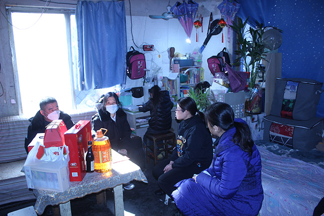 2022年1月24日,年關(guan) 將至,氣溫驟降。濟南市中區人民法院少審庭的法官們(men) 在李江庭長的帶領下,踩著厚厚的積雪,提著滿滿的春節年貨和生活、學習(xi) 用品,來到轄區內(nei) 一間不足20平方米的簡易出租房內(nei) ,看望了從(cong) 大山深處來濟南生活的秦女士(化名)和她的三個(ge) 女兒(er) 。 6年裏的每個(ge) 春節前夕,他們(men) 都會(hui) 來看望這個(ge) 因“案”結緣,心中時常牽掛的小姐妹家。
