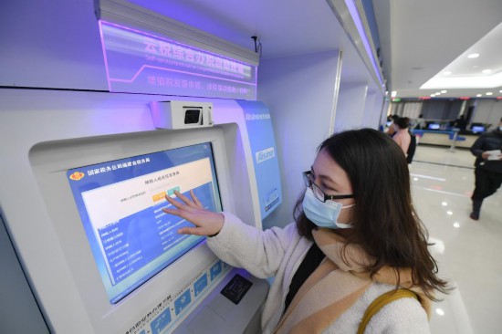 2021年1月15日,在國家稅務總局福州市台江區稅務局辦稅服務廳,一名企業(ye) 員工通過自助終端查詢納稅信用等信息。新華社記者 宋為(wei) 偉(wei) 攝
