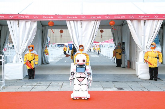 昨天上午,海澱區召開新聞發布會(hui) ,介紹五棵鬆體(ti) 育中心場館及外圍服務保障工作準備情況。五棵鬆體(ti) 育中心外圍保障組副組長、海澱萬(wan) 壽路街道黨(dang) 工委書(shu) 記聶俊傑介紹,聚焦科技賦能,場館周邊用上了很多智能設施。觀眾(zhong) 入場時,12台安全服務機器人提供無接觸式服務。通過人臉識別、檢票驗碼、識別身份證、醫保卡等任何一種方式提供身份信息後,機器人可在1秒鍾內(nei) 完成身份驗證、智能測溫、健康碼查詢、疫苗接種情況查詢等8項流程,從(cong) 而實現觀眾(zhong) 安全、便捷、快速通行。