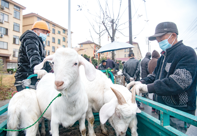 1月24日,金華市金義(yi) 新區赤鬆鎮仙橋臘月第一個(ge) 活羊集市開市,各地農(nong) 戶運來自家飼養(yang) 的活羊上市交易。(時寬兵)