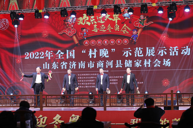 人民網濟南1月27日電 1月23日,是農(nong) 曆的臘月二十一,一場以“喜迎冬奧會(hui) 歡樂(le) 過大年”為(wei) 主題的“村晚”在山省濟南市商河縣儲(chu) 家村“舉(ju) 辦”,這是2022年全國“村晚”示範展示點錄製現場之一。