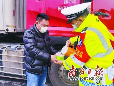 交警為(wei) 旅途中的司機提供便民服務。 通訊員供圖