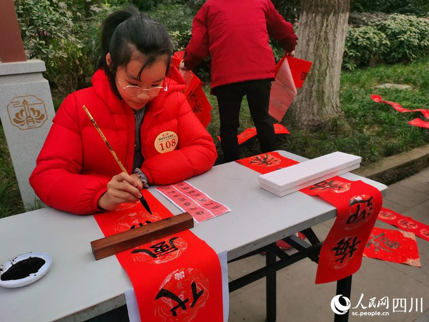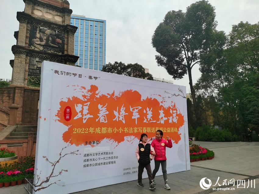 參加寫(xie) 春聯活動的小選手合影。人民網 劉海天攝