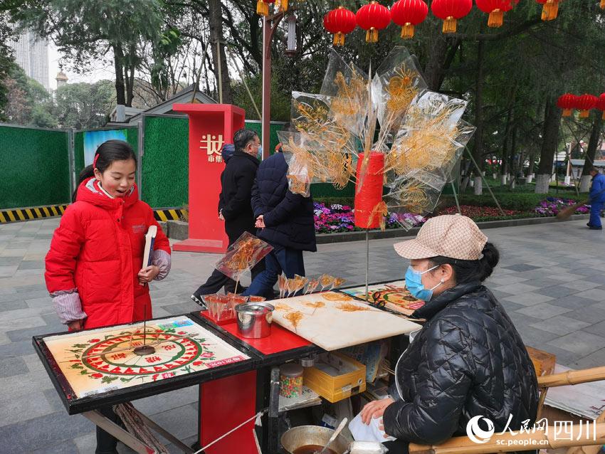花美糖甜。有人擺起了糖畫攤子,各種美麗(li) 造型的糖果不但讓小朋友沒有抵抗力,連大人也忍不住想要嚐嚐。一個(ge) 大孩子看著漂亮的糖,還沒吃就已經兩(liang) 眼放光、三分甜醉了。一個(ge) 小嬰兒(er) 蒙長輩“開恩”賞了一塊糖,剛舔了一口就笑成了花。那眉梢眼角的純真笑容,好像在詢問:“哎呀!這是啥東(dong) 西,怎麽(me) 這麽(me) 甜啊?”在他單純的心靈裏,這個(ge) 糖是個(ge) 美妙的東(dong) 西,這個(ge) 世界是如此美好,值得他去爭(zheng) 取快點成長,好能夠一一探索。