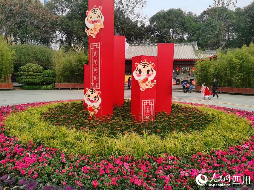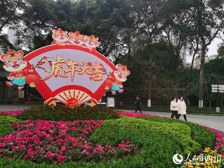 園內(nei) 的幾處空地上,布置了幾個(ge) 花壇。上邊除了吉祥的紅黃色彩,還有可愛的動漫形象老虎圖案。“虎年吉祥”“金虎迎春”“新年快樂(le) 過年好”……各種好彩頭的詞語,標示出歡度春節的主題,看了讓人精神為(wei) 之一振。