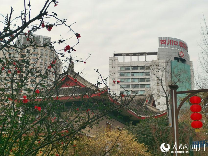 紅梅花已經迎春綻放,老建築依舊古色古香。人民網 劉海天攝