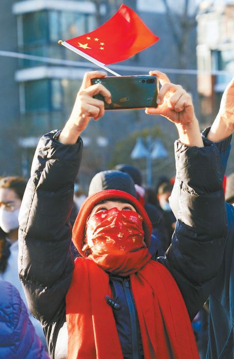 昨天,“重啟”的百旺茉莉園一期充滿了新年的喜慶,在小區南門廣場處,孩子們(men) 和居民們(men) 一起高唱《歌唱祖國》《明天會(hui) 更好》,表達感激和喜悅之情。本報記者 王海欣攝