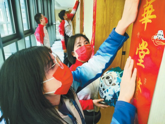 昨天上午,菲律賓、東(dong) 帝汶、摩納哥、智利、馬達加斯加、法國共6個(ge) 代表團14人入境後進村入住。下午,拉脫維亞(ya) 、希臘、斯洛文尼亞(ya) 、意大利、中國台北等14個(ge) 代表團92人進村。目前,村內(nei) 居民達到近800人。抵達當天恰逢中國除夕,運動員一進村就感受到一個(ge) 別樣的運動員之家。各個(ge) 居住組團高高掛起中式六角造型宮燈,每間運動員公寓也都貼上了對聯,年味撲麵而來。