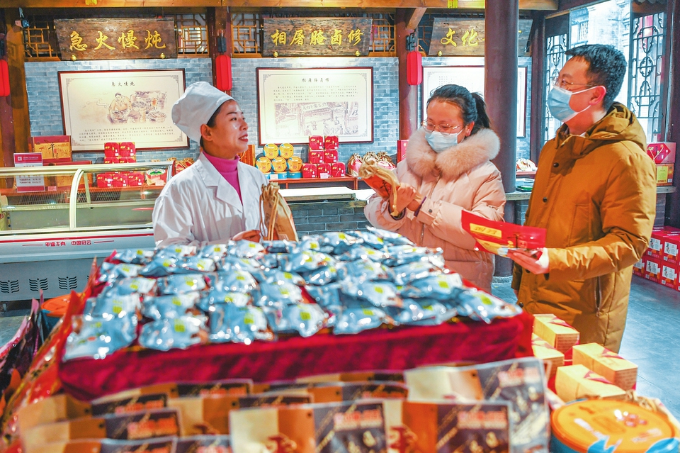 1月28日,遊客在平遙古城一商店內(nei) 購買(mai) 年貨。虎年春節將至,平遙古城內(nei) 花燈高掛,特色產(chan) 品商店貨物充足,洋溢著濃濃的年味。(梁生仁攝)