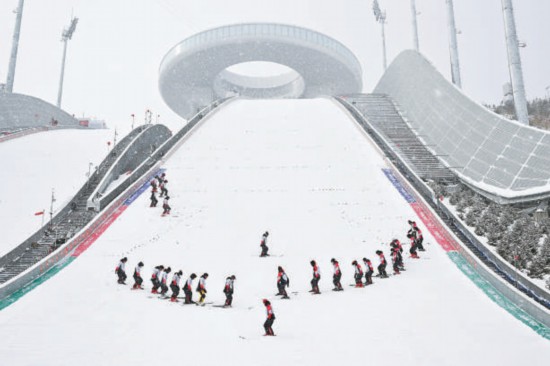 昨天,被稱為(wei) “雪如意”的國家跳台滑雪中心清雪整裝迎訓練。新華社發