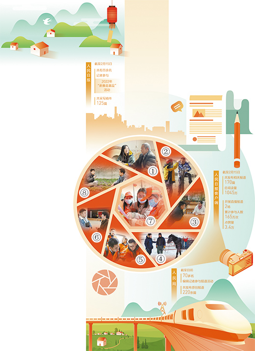 圖①至圖⑧依次為(wei) 本報重慶分社記者常碧羅(左)、青海分社記者賈豐(feng) 豐(feng) (右)、湖南分社記者王雲(yun) 娜(右)、內(nei) 蒙古分社記者吳勇(左)、福建分社記者劉曉宇(左)、浙江分社記者竇瀚洋(左)、廣西分社記者祝佳祺(中)及人民網記者馮(feng) 亞(ya) 濤(左)在春節期間深入基層采訪。