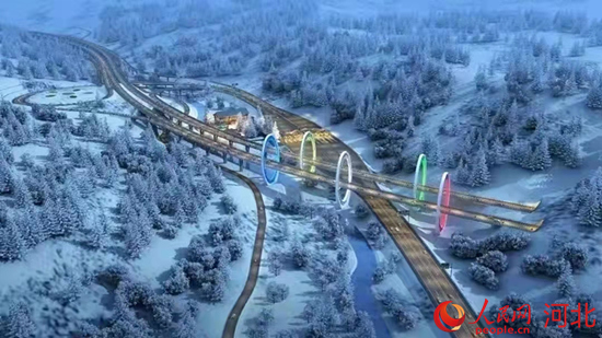 行車在延慶和崇禮賽區的高速公路上,冬奧冰雪五環橋映入眼簾,變換的燈光不斷幻化出美麗(li) 的圖案,將山、橋和城串聯起來,創意十足。