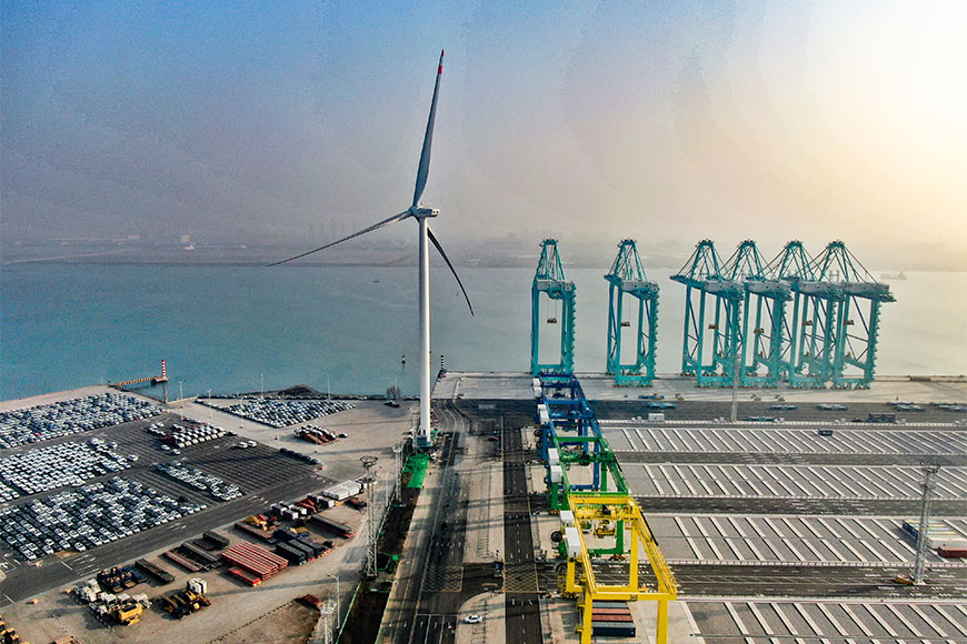 全球首個(ge) “智慧零碳”碼頭智慧綠色能源係統順利並網發電。樂(le) 坤攝