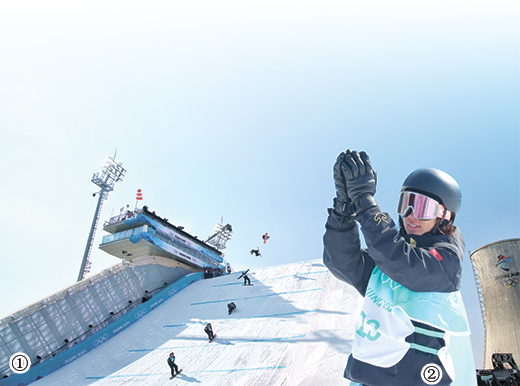 圖①:2月15日,單板滑雪男子大跳台決(jue) 賽,蘇翊鳴第二跳確定優(you) 勢。