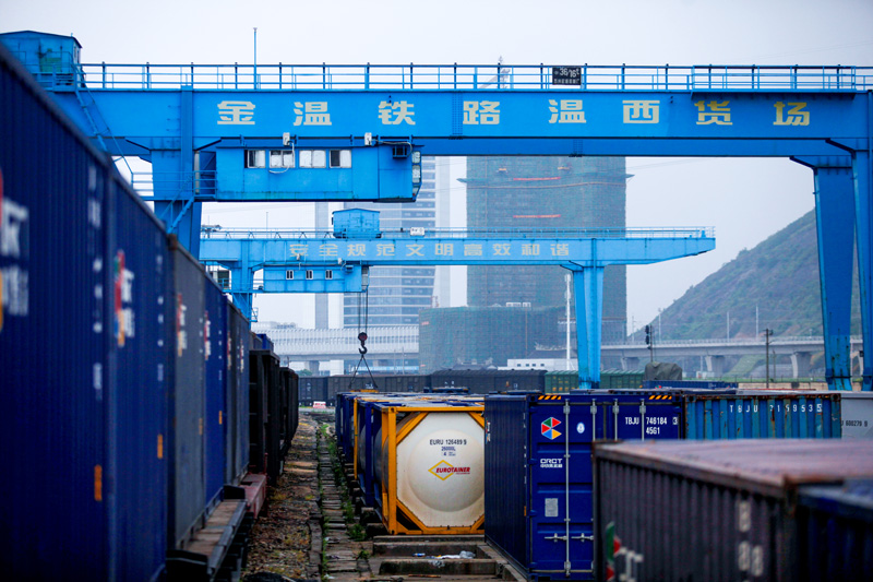 春節期間,大量貨物從(cong) 金溫鐵路溫州西站裝車運出。戴益澤攝