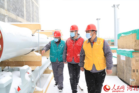 雄東(dong) 500千伏變電站工程複工前項目管理人員對GIS設備存放區進行檢查。 王海軍(jun) 攝