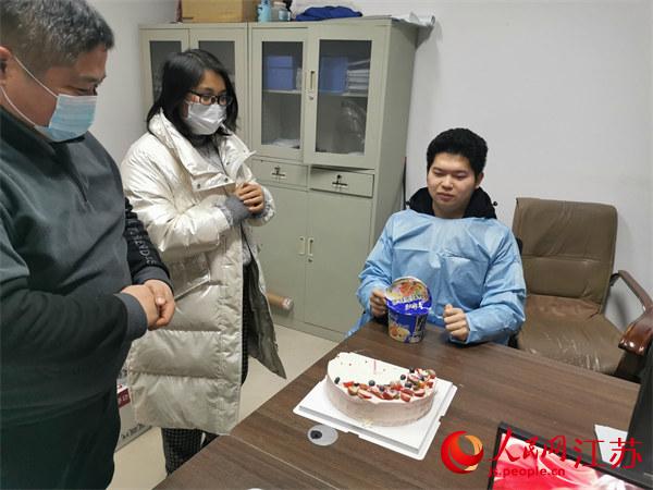 不過,讓楊一波難忘的是,他在疫情防控一線過了一個(ge) 有意義(yi) 的生日。2月16日,是楊一波26歲生日,但他不能和自己的家人一起。就在他忙得不可開交時,他的女朋友到采樣點給他送來了生日蛋糕。在大家的祝福聲中,他一口吃著泡麵,一口吃著蛋糕。緊張的疫情防控形勢讓他來不及感動,匆匆又奔赴防控一線。