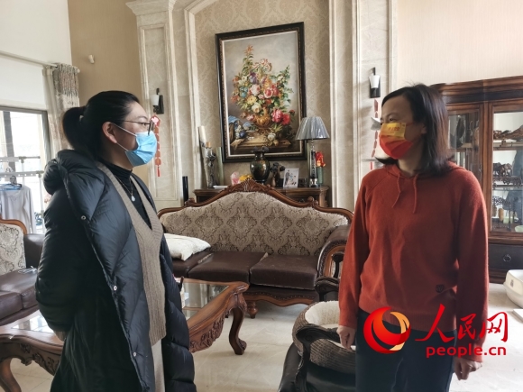 誌願者錢喜紅(右)為(wei) 社區工作人員騰出房間休息。人民網記者王繼亮攝