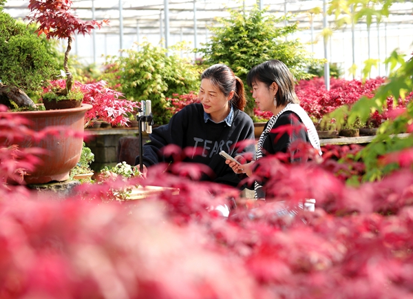 堰下村隻是沭陽縣大力推動“產(chan) 業(ye) +創業(ye) +就業(ye) ”的縮影。沭陽縣發改局局長喬(qiao) 德素介紹,截至目前,沭陽縣吸引花木生產(chan) 核心區70%以上的大學畢業(ye) 生選擇返鄉(xiang) 創業(ye) ,當地還與(yu) 淘寶合作建立“淘寶·沭陽直播基地”,吸引了一批新生代參與(yu) 到花木產(chan) 業(ye) 鏈中。當地通過實施“遠程網店”工程,讓農(nong) 民“觸網”,將手機變身“新農(nong) 具”、直播變成“新農(nong) 活”,直播帶貨成為(wei) 了沭陽花木銷售的新時尚。