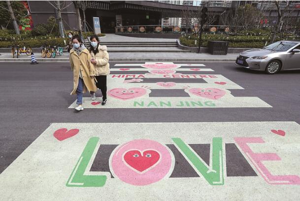 南京雨花台區設置“愛心斑馬線”引人注目