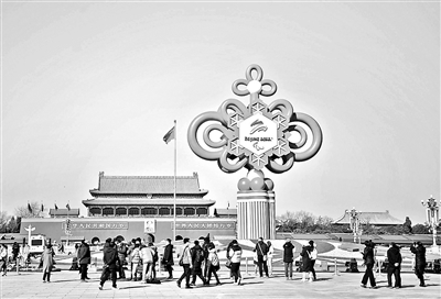 昨天下午,北京青年報記者來到天安門廣場,“精彩冬奧”主題花壇矗立在廣場中心。花壇主景是紅彤彤的中國結,帶著濃濃年味,周圍環繞著藍色的雪花。而位於(yu) 中國結中心的北京冬奧會(hui) 會(hui) 徽,已更換為(wei) 北京冬殘奧會(hui) 會(hui) 徽,且南北兩(liang) 麵均已更換完畢。