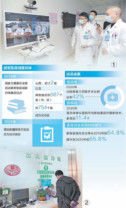 近日,國家衛健委印發《醫療機構設置規劃指導原則(2021—2025年)》,要求按照縣鄉(xiang) 一體(ti) 化、鄉(xiang) 村一體(ti) 化原則積極發展緊密型縣域醫共體(ti) 。2019年,國家衛健委在全國啟動緊密型縣域醫共體(ti) 建設試點。目前全國已有535個(ge) 縣建成縣、鄉(xiang) 、村三級聯動的緊密型縣域醫共體(ti) ,試點縣醫療服務效能提高,縣域內(nei) 就診率超90%。
