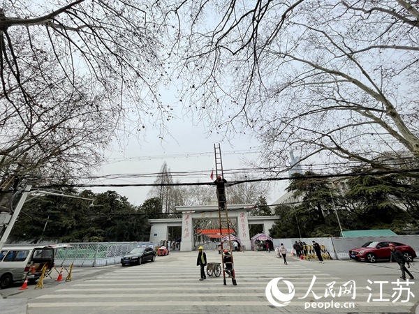 南京大學門前的漢口路杆線下地工程正在建設中。人民網 馬曉波攝