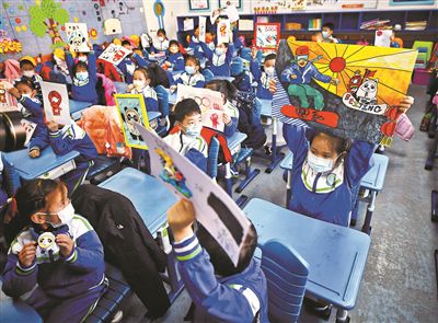昨天是本市中小學生春季學期開學首日,各校的開學第一課紛紛以傳(chuan) 播“冬奧精神”為(wei) 主打,將冬奧融入“大思政課”。圖為(wei) 昨天,中科院附屬玉泉小學,同學們(men) 展示自己在寒假裏創作的以冬奧、“冰墩墩”為(wei) 主題的藝術作品。攝影/本報記者 郝羿