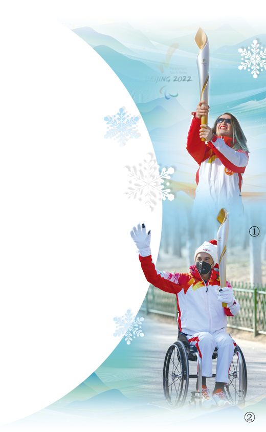 圖①:3月3日,火炬手、國際殘奧委會(hui) 運動員委員會(hui) 委員瑪蒂娜·凱羅尼傳(chuan) 遞火炬。